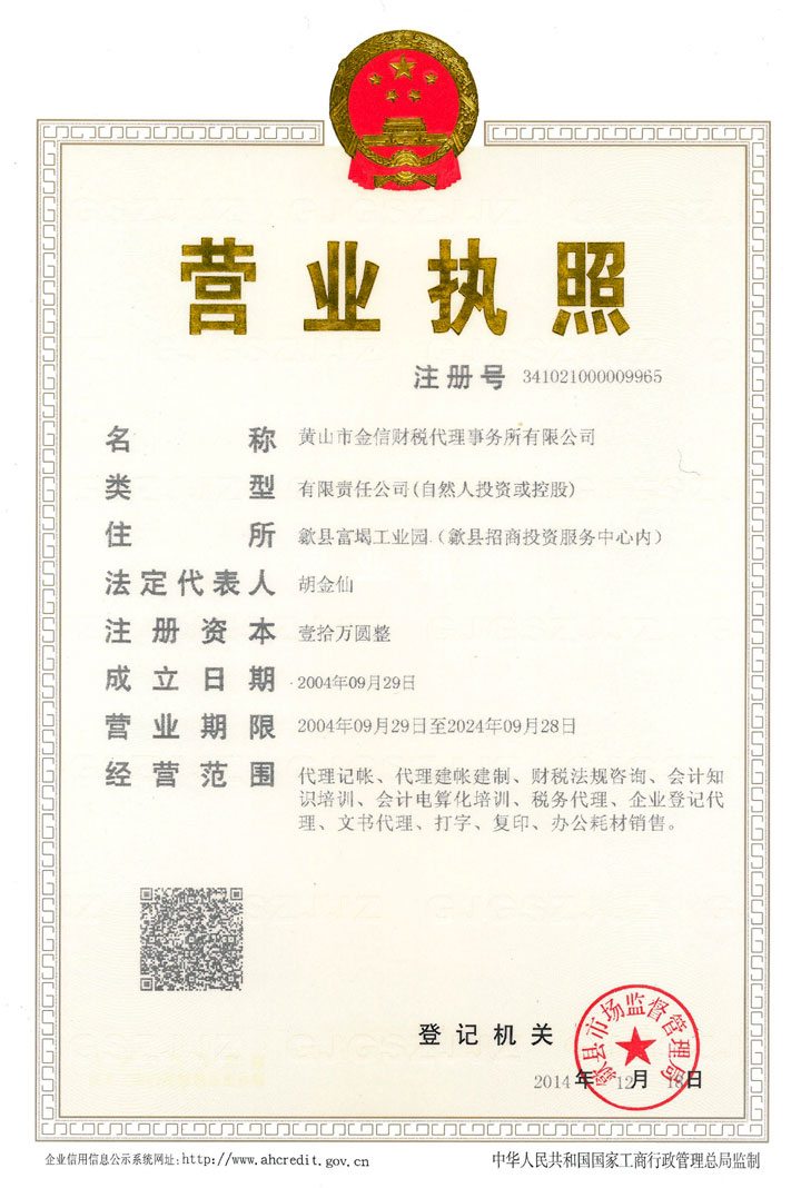 黃山市金信財(cái)稅代理事務(wù)所有限公司