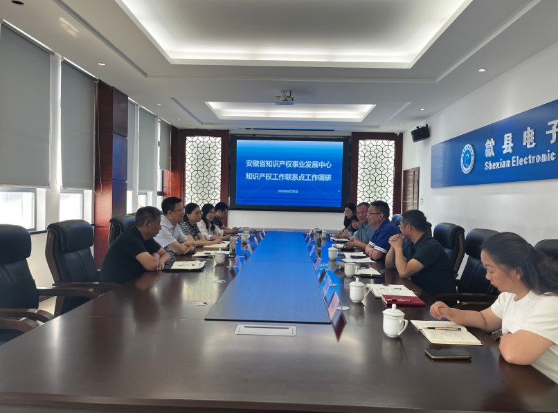 2025 年 5 月 30 日上午,安徽省知識(shí)產(chǎn)權(quán)事業(yè)發(fā)展中心副主任、一級(jí)調(diào)研員畢清一行,在黃山市知識(shí)產(chǎn)權(quán)促進(jìn)科科長(zhǎng)施銀明、市知識(shí)產(chǎn)權(quán)公共服務(wù)中心主任胡燕、歙縣市場(chǎng)監(jiān)督管理局副局長(zhǎng)丁大勇等人的陪同下,深入安徽省知識(shí)產(chǎn)權(quán)信息公共服務(wù)網(wǎng)點(diǎn)、黃山市知識(shí)產(chǎn)權(quán) “一站式” 服務(wù)工作站——安徽香寧眾創(chuàng)科技服務(wù)公司開(kāi)展知識(shí)產(chǎn)權(quán)工作聯(lián)系點(diǎn)調(diào)研活動(dòng),安徽香寧公司總經(jīng)理胡海鋒、香寧公司所屬黃山徽明知識(shí)產(chǎn)權(quán)代理事務(wù)所所長(zhǎng)葉綠林陪同參與調(diào)研會(huì)議。